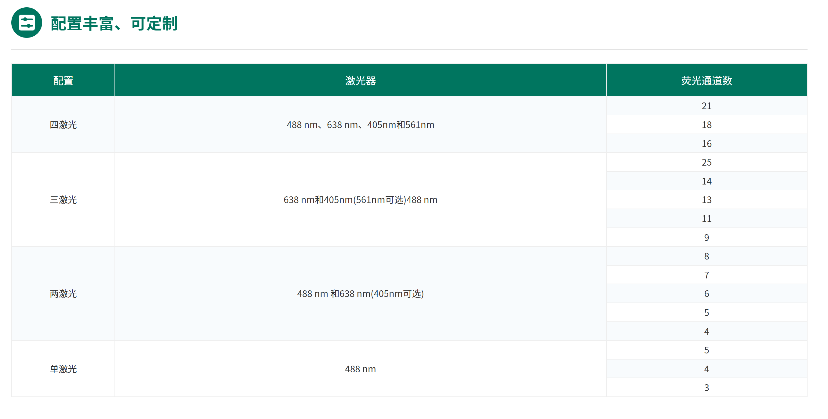 1激光3色至4激光21色 488nm,638nm,405nm,561nm激光器
