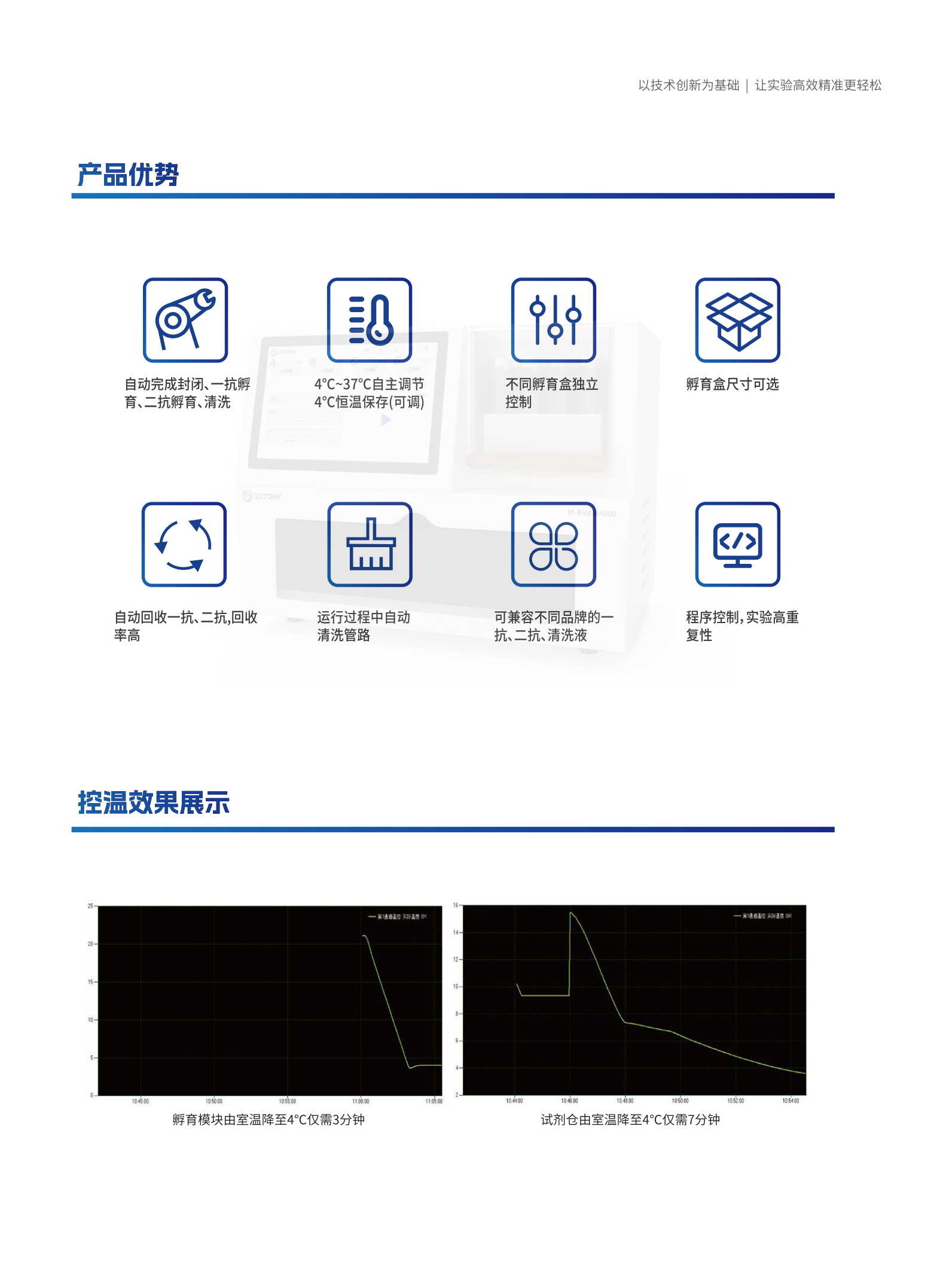 M-Blot全自动WB孵育工作站可以全自动完成WesternBlot过程中的封闭、孵育及洗涤过程,只需一次性将膜与试剂加入仪器中,设置、启动程序即可等待孵育工作完成,省心省力,简化操作,缩短耗时。