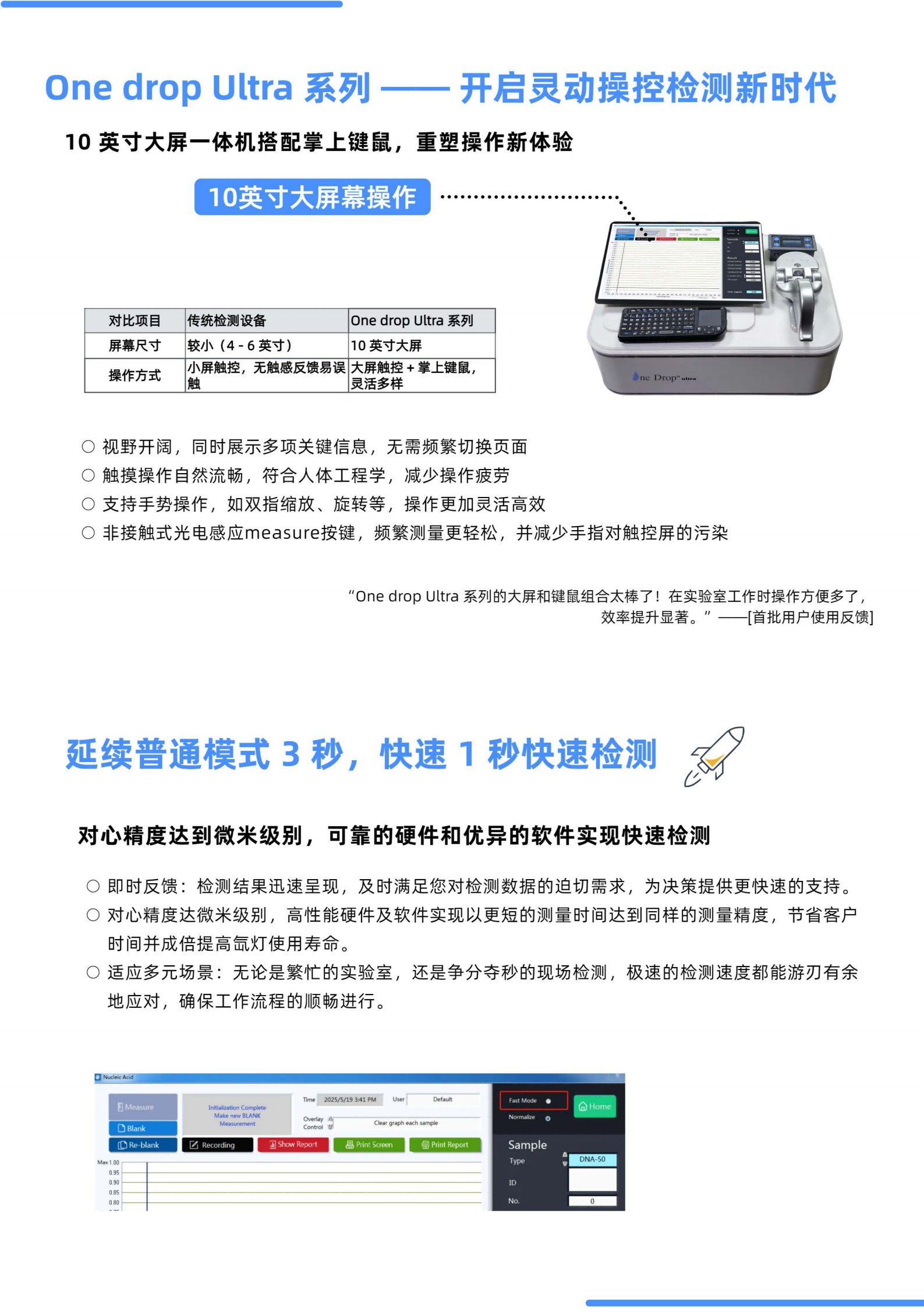 视野开阔,同时展示多项关键信息,无需频繁切换页面 触摸操作自然流畅,符合人体工程学,减少操作疲劳 支持手势操作,如双指缩放、旋转等,操作更加灵活高效 非接触式光电感应measure按键,频繁测量更轻松,并减少手指对触控屏的污染